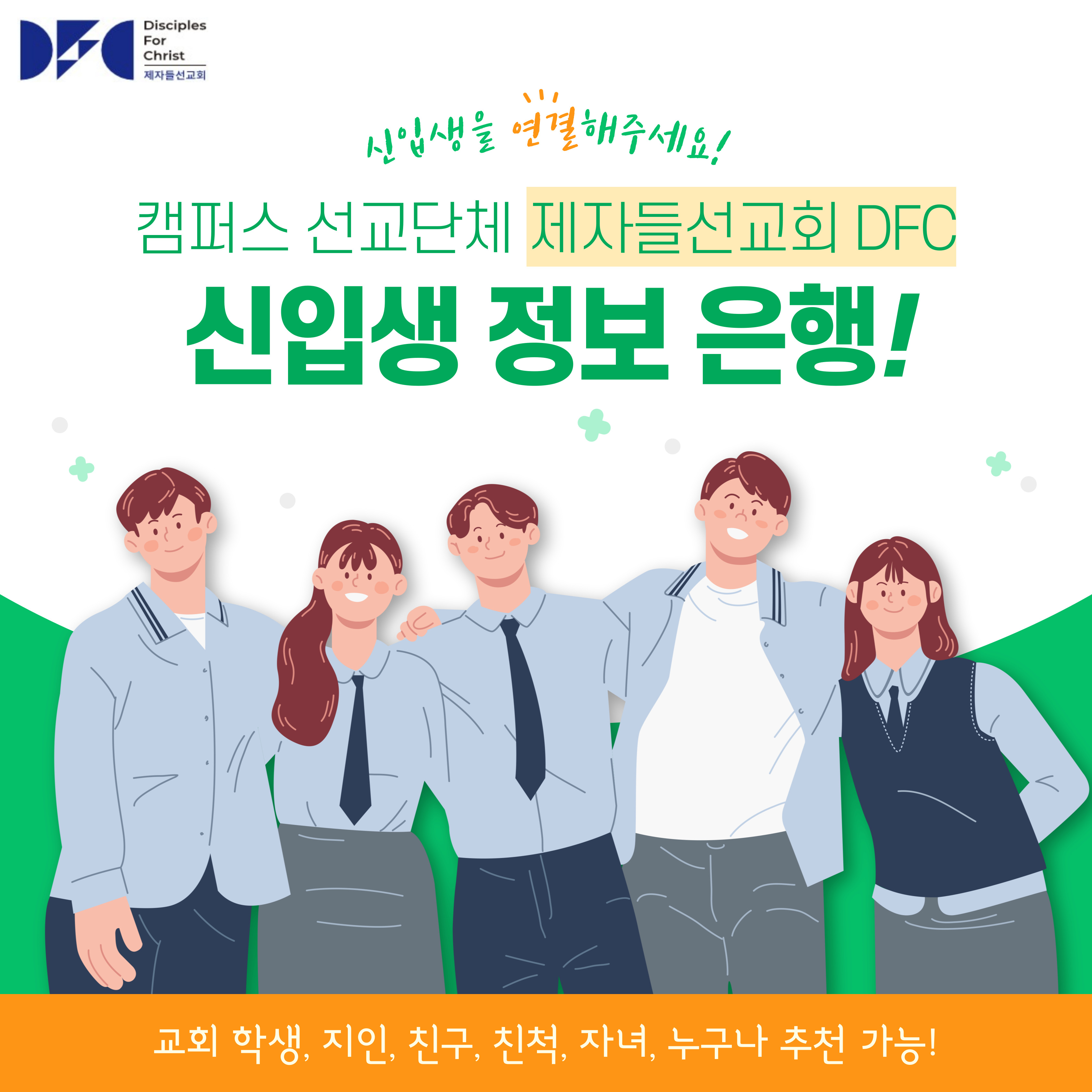 2023년 새로운 가지원을 찾고 있습니다! 1학년이 아니더라도, 혹여나 아직 예수님을 믿지 않는다고 하더라도 마음이 가고, DFC를 소개해주고 싶은 사람이 있다면, 그분과 이야기하고, 저희에게 소개시켜주세요. 함께 만나고 대학교에서 예수님을 더 깊이 알아가고, 예수 제자로 살아가는 그 자리로 초대합니다!