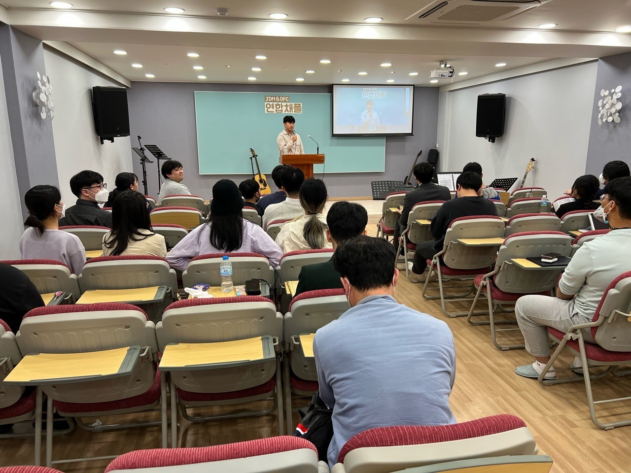 4월 6일 채플은 김주원 목사님을 초청하여 이단특강을 듣게 되었습니다. 그 다음 주인 13일에는 전대 후문에 위치한 JDM 센터에서 함께 연합채플을 드렸습니다. 이단특강은 정기적으로 우리 주변에 있는 이단에 대해 알고 주의하자는 생각으로 하고 있지만, 타 단체와 함께 연합채플을 드리는 것은 색다른 경험이었고, 2학기에는 DFC 센터에 초청하여 함께 연합채플을 드릴 계획에 있습니다. 이후로도 계속해서 함께 사역하는 단체로 접점들이 많았으면 좋겠습니다.