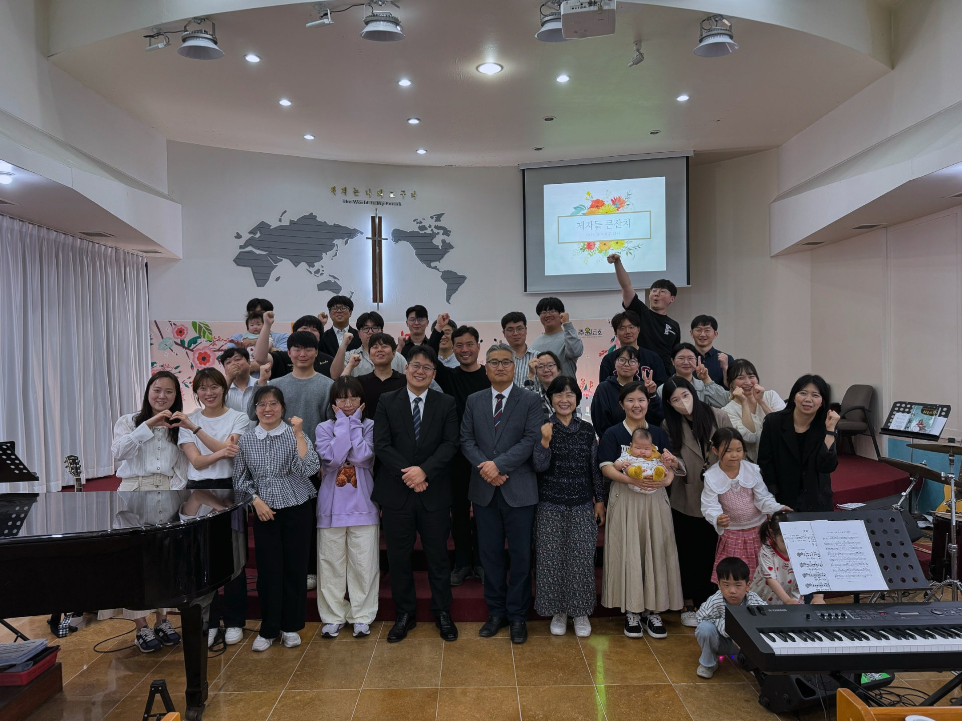 5월 11일(토)에는 주원교회에서 제자들 큰잔치가 진행되었습니다. 졸업한 맏가지장님들을 초청하고, 함께 사역했던 선교사님들과 한 자리에 모여 예배하고, 오래만에 소식을 전해듣는 귀한 시간이 되었습니다. 이번 학기의 사역이나, 특히 이번에 맏가지장님들의 후원을 통해 새로운 음향장비와 무선마이크를 구매하게 된 부분에 대해 소식을 전할 수 있게 된 것이 큰 기쁨이 되었습니다.
